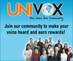 For each online survey you complete, Univox will award you with reward points. Every 100 points you earn, is the equivalent of $1.00 US, or approximately £0.65.